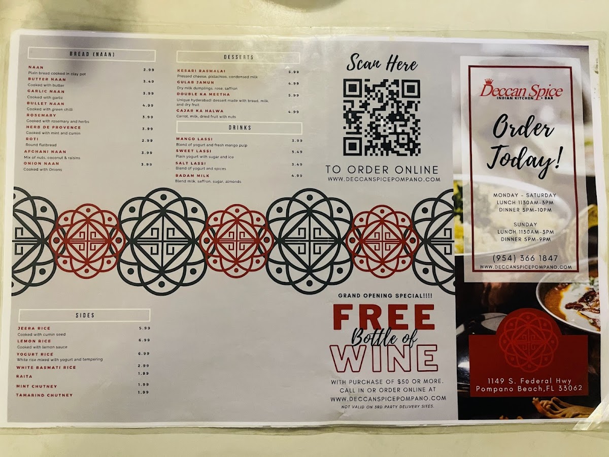 Mix of spinach, onion, and potatoes, crisp gram flour battered. Served with mint and tamarind chutney